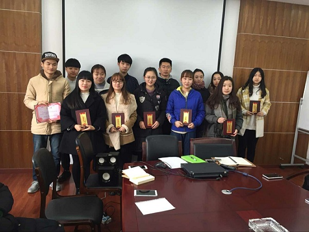 会上,辅导员徐德猛对有突出贡献的12名优秀学生干部进行表彰颁奖。分团委副书记蔡箐箐进行了15年度工作总结,辅导员徐德猛提出了2016年团学工作三个要点。在表彰大会的最后,院长助理陈煜作了讲话,他首先向获奖者表达了衷心的祝贺,并分析了NT动漫