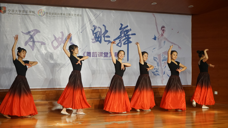 开场以舞蹈基本功展示拉开序幕,杨庭芳、周轶路、戚诗杭、银浪、曹碧航五位同学展示了她们平时舞蹈课的基本动作。随后,身韵组合、蒙古舞组合、新疆舞组合纷纷登场,现场观众有如身临其境。独舞《一篓秋》、《采薇》、《玉生烟》在周轶路、戚诗杭、徐鑫阳的各自演绎下,观众纷纷鼓掌喝彩。群舞《好一片美丽的茉莉花》给人以无尽的美感;最后全体参演人员以活动四射的《咖喱咖喱》舞蹈收场。