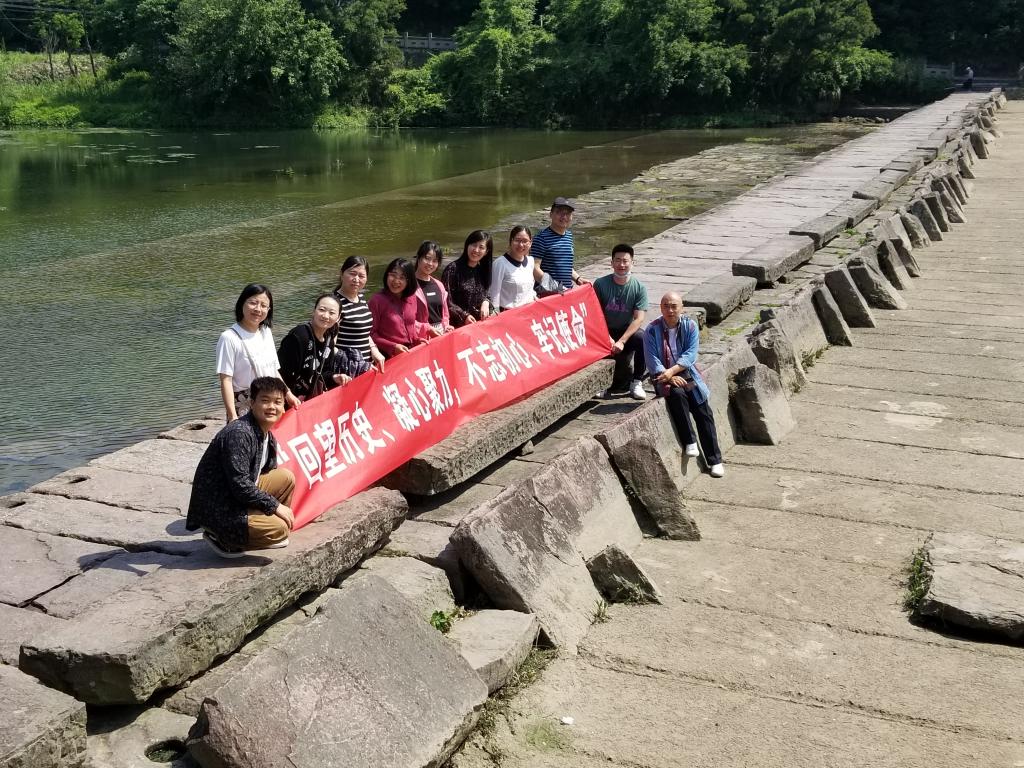 首战到达中国乡村音乐实习实训基地——趣湾庄园,体验特色生活,交流传统乐曲发扬与传承的难点与目标。接着参观茶园,为美委与学院美育思政工作采风,提出丰富学生暑期实践,将劳动教育与美育相结合的初步构想。之后前往它山堰和它山堰鄞江陈列馆参观,了解它山堰十大景点和四大奇迹,感受自然之美,也体会先人的智慧。