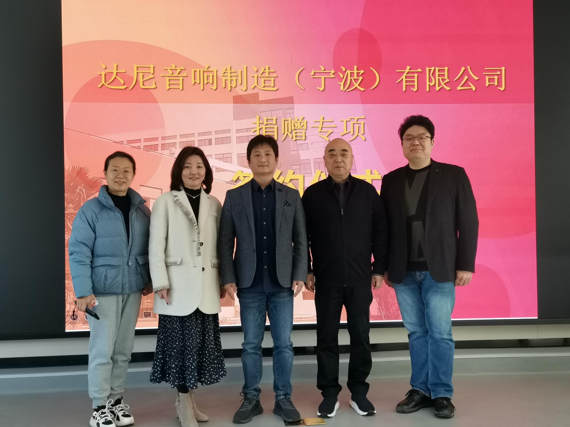 与达尼音响制造(宁波)有限公司签订专项捐赠协议。学院特聘院长俞子正、党委书记孔晓虹与NT动漫