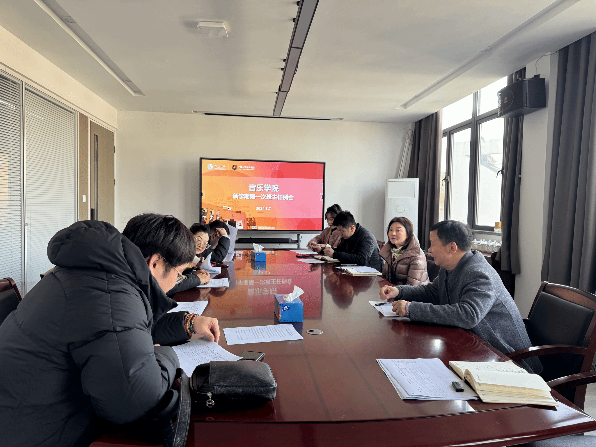 3楼会议室召开2024年春季学期第一次全体班主任工作会议。学院党委书记孔晓虹,全体班主任老师和辅导员参加会议。