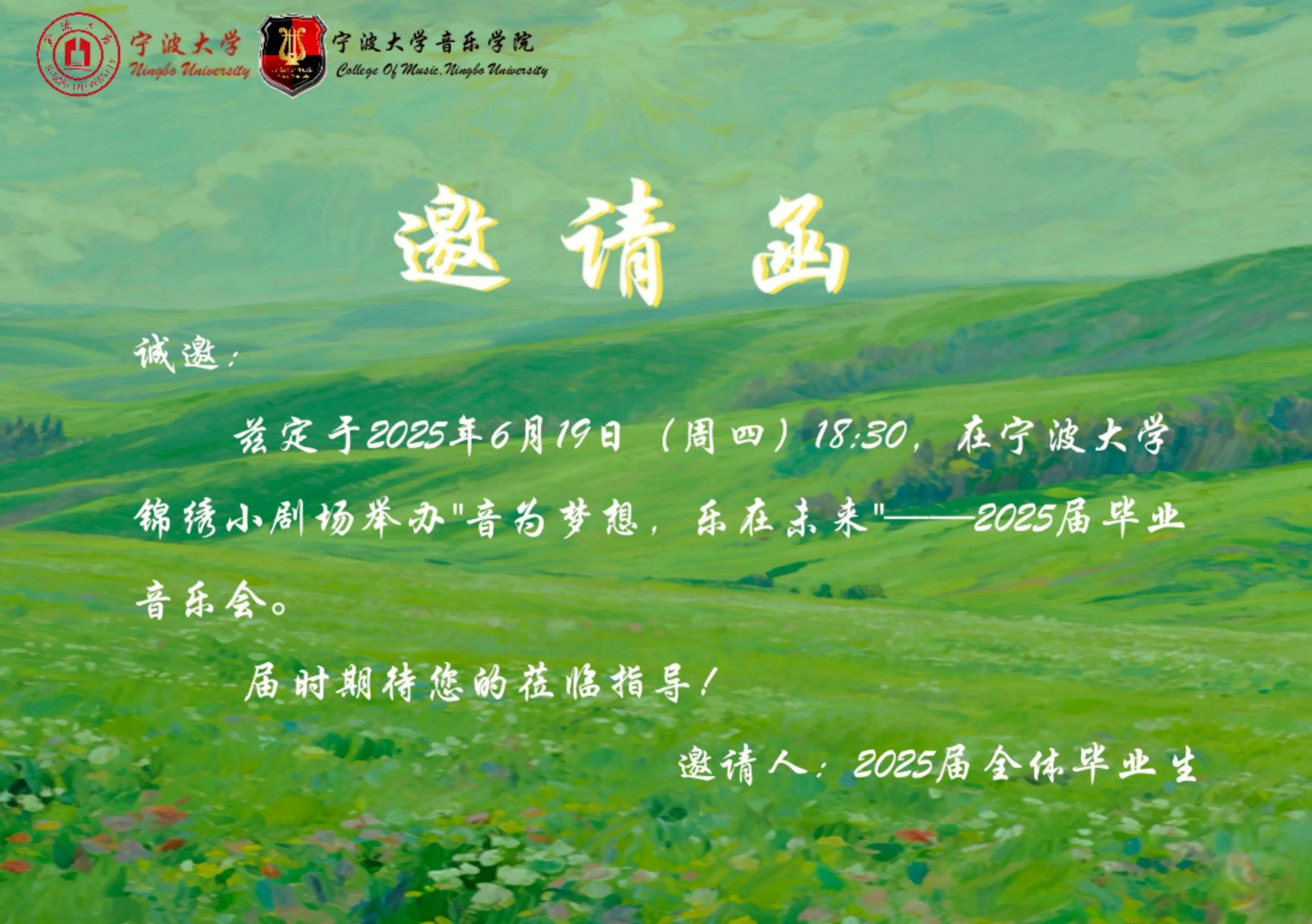 上一条:预告|黄少婷独唱音乐会即将唱响 下一条:转发-关于举办2025年“无毒青春,绽放未来”禁毒宣传行暨宁波市全民禁毒宣传月活动启动仪式的通知