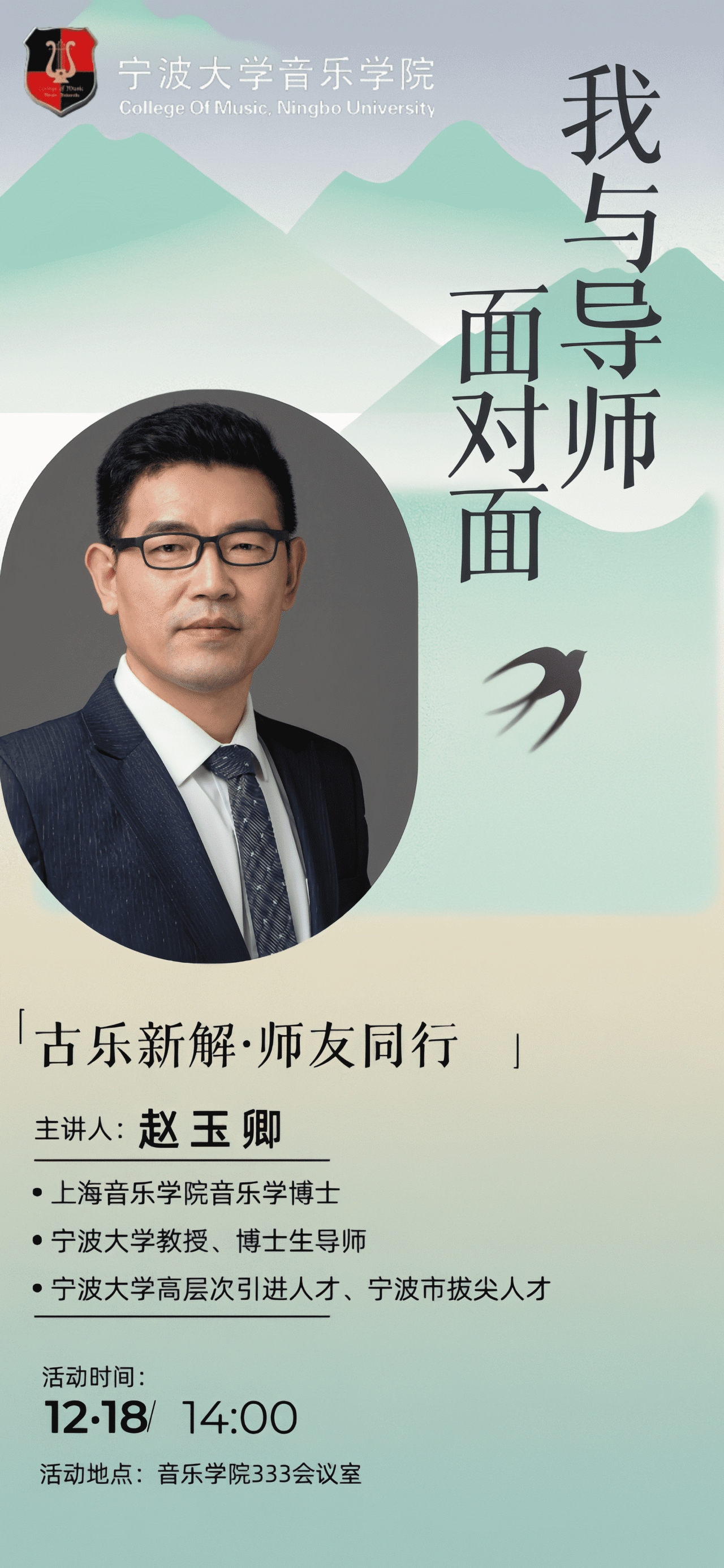 为进一步加强NT动漫 研究生与导师之间的沟通交流,培养学生的科研思辨能力,激发研究生的学术热情和探索精神,NT动漫 即将举办“我与导师面对面”研究生思政品牌系列活动第18期——“古乐新解·师友同行”师生座谈会,本次特别邀请赵玉卿教授及其研究生团队,用新颖的视角解读传统曲目,让古老旋律焕发新生,讲述中国音乐史的独特魅力。诚挚邀请感兴趣的师生到场参与,期待与您在现场相见!
