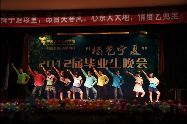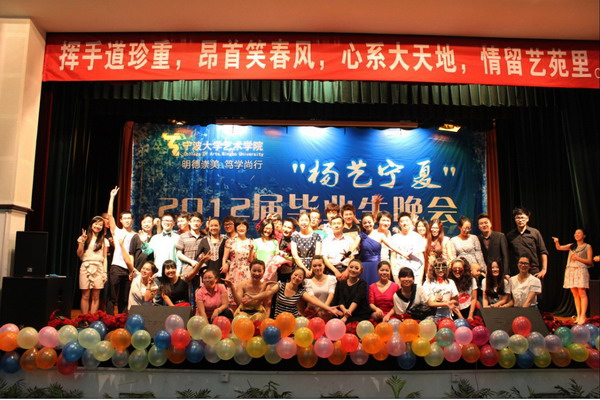 “扬艺宁夏”2012届毕业生晚会在锦绣小剧场隆重上演。栀子花开,又是一年毕业季,即将离开母校的2012届毕业生用心奉献了一场欢乐与感动同在的晚会。院党委书记袁虹、副院长陈宇兰、院党委副书记叶春桥、学工办王盛老师、分团委书记郑乐老师、毕业班班主任和兄弟学院的嘉宾等出席并观看了晚会。