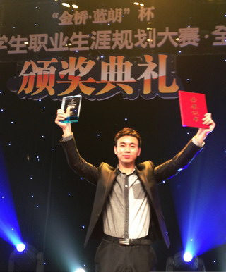 本次大赛包括各高校初赛、各省决赛和全国总决赛,金崇松同学以浙江省职业生涯规划大赛创业组第一名的成绩进入全国150强。经组委会组织专家对文本作品评审之后,进入60强并赴京参加决赛。在决赛中,通过“规划作品预审”、 “现场自我展示及答辩”、“参赛选手作品互评”和“职业角色模拟”四个环节的比拼,金崇松同学最终以全国第12名的好成绩获得二等奖,为学校和学院争得了荣誉。