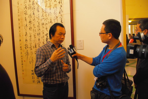林邦德老师在获奖作品前接受央视数字书画频道记者采访