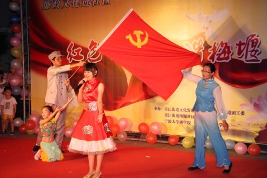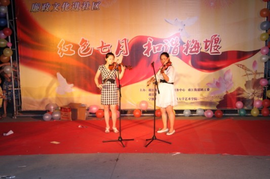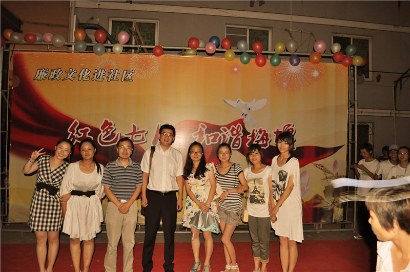 7月18日晚7点,江北区甬江街道梅堰社区的新文化广场上,人头攒动,琴声悠扬,一场精彩的以“红色七月,和谐梅堰”为主题的纳凉晚会正在这里举行,吸引了众多居民驻足观看,为这炎炎夏日吹起一阵和谐、文明、温馨的清风。校团委书记周青、商学院党委书记熊德平、NT动漫