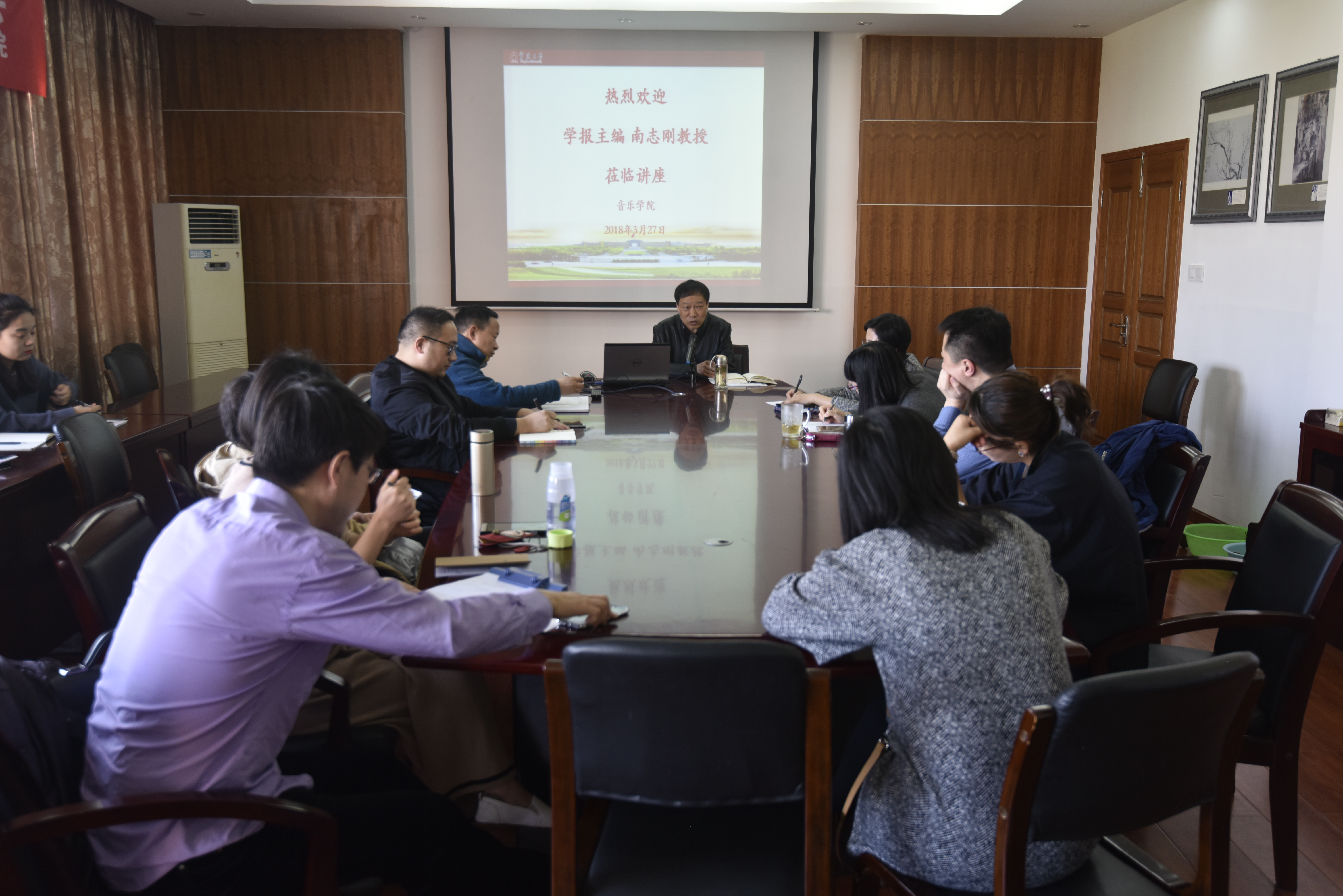 学报副主编南志刚教授在西校区厚德楼408会议室开展了题为《浙东文化与艺术研究》的讲座。本次讲座由钟青副教授主持,各教研室教师代表,在读研究生与本科生参加聆听。