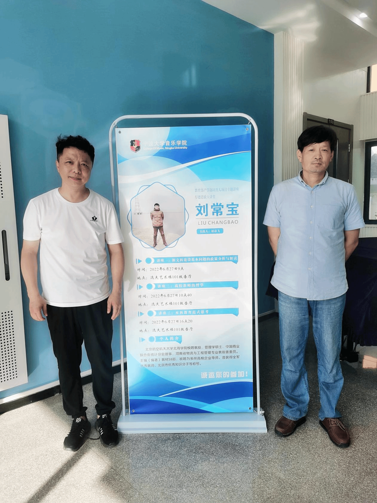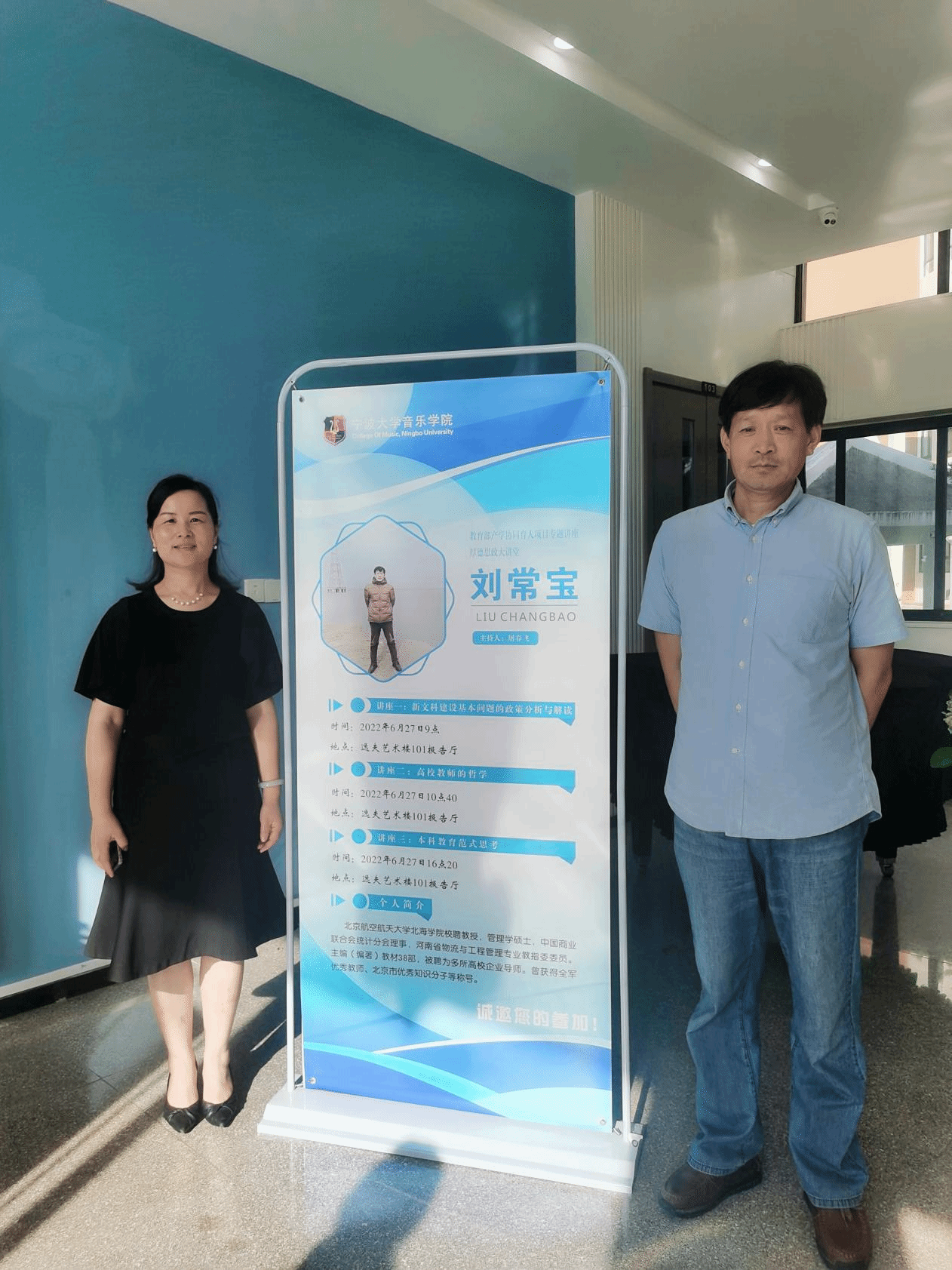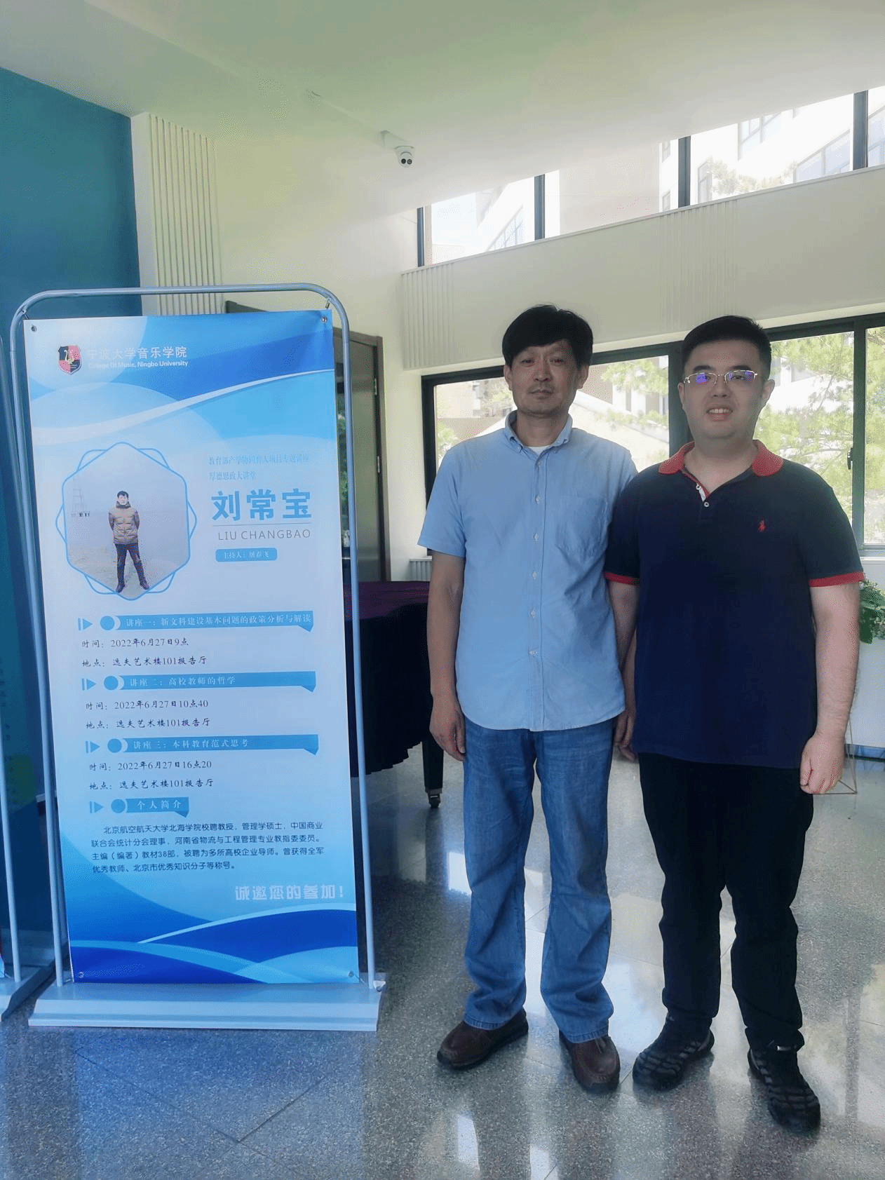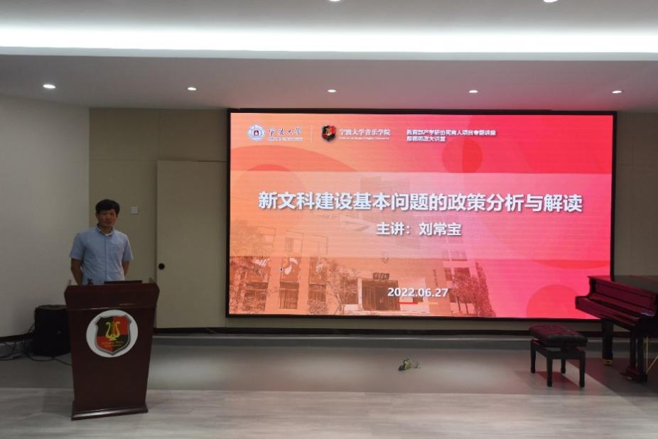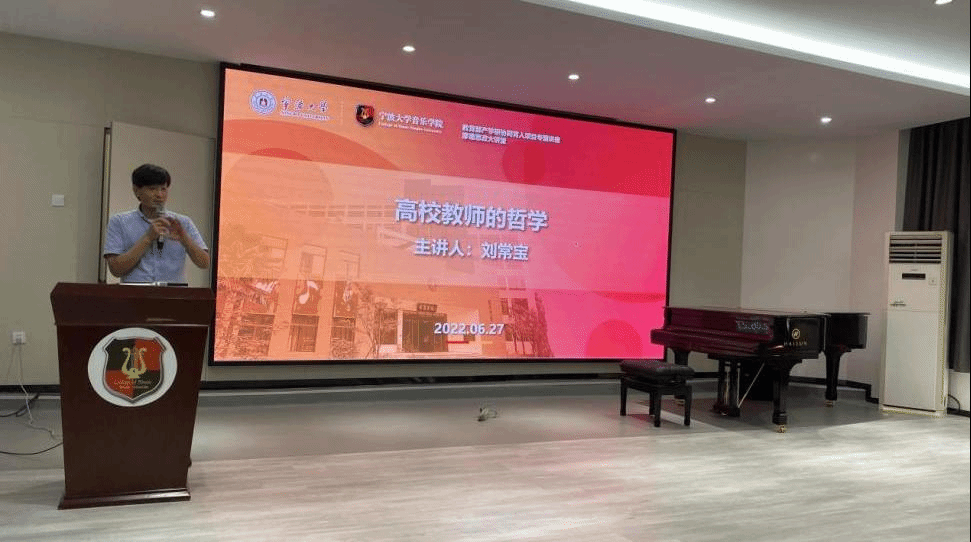 上半场由北京航空航天大学北海学院校聘教授刘常宝带来两场讲座——讲座一是“新文科建设基本问题的政策分析及解读”、讲座二是“高校教师的哲学”。