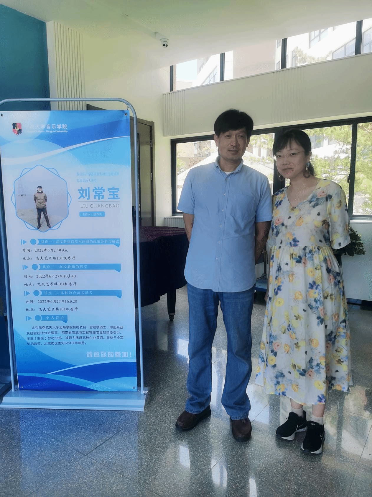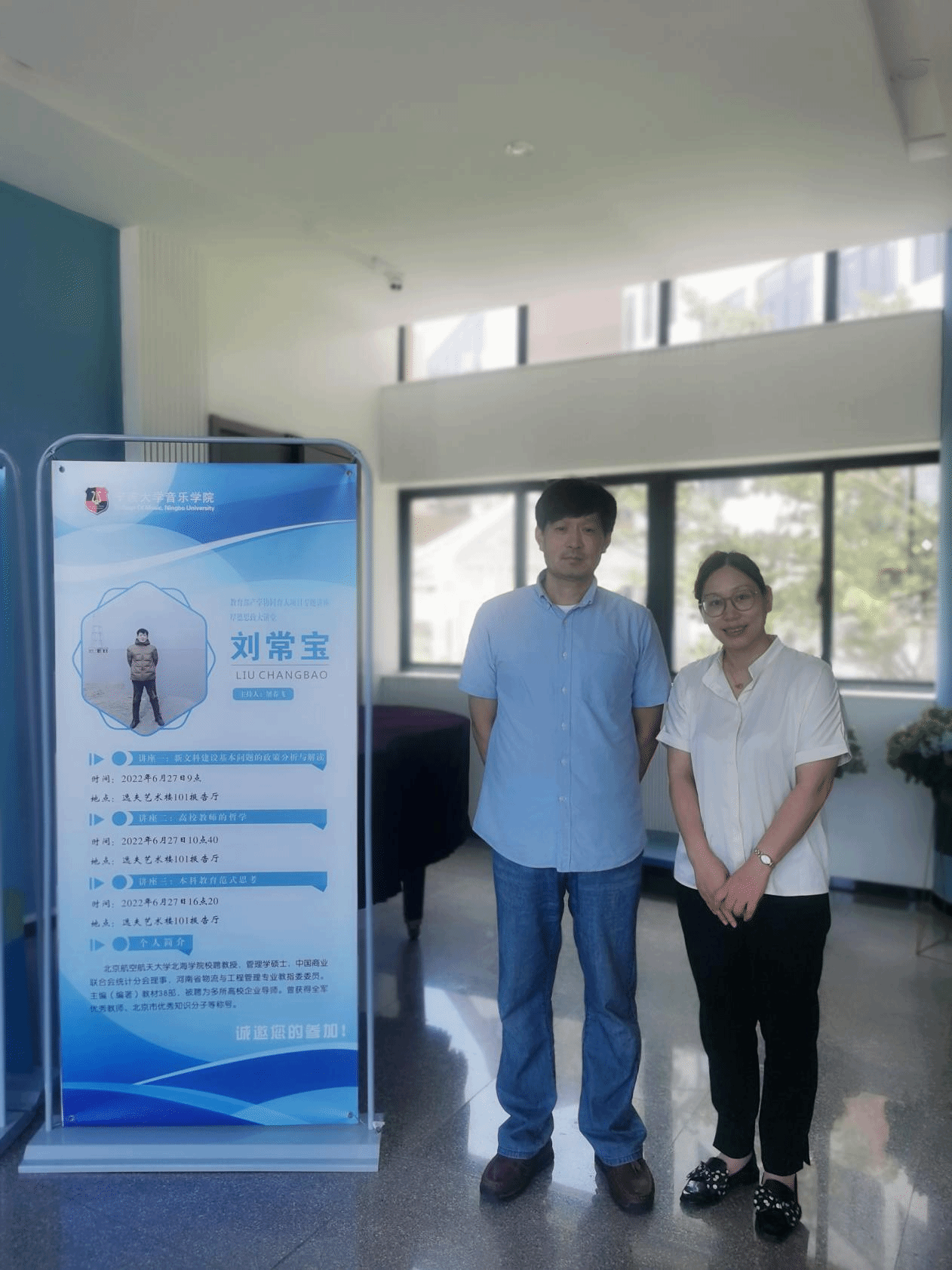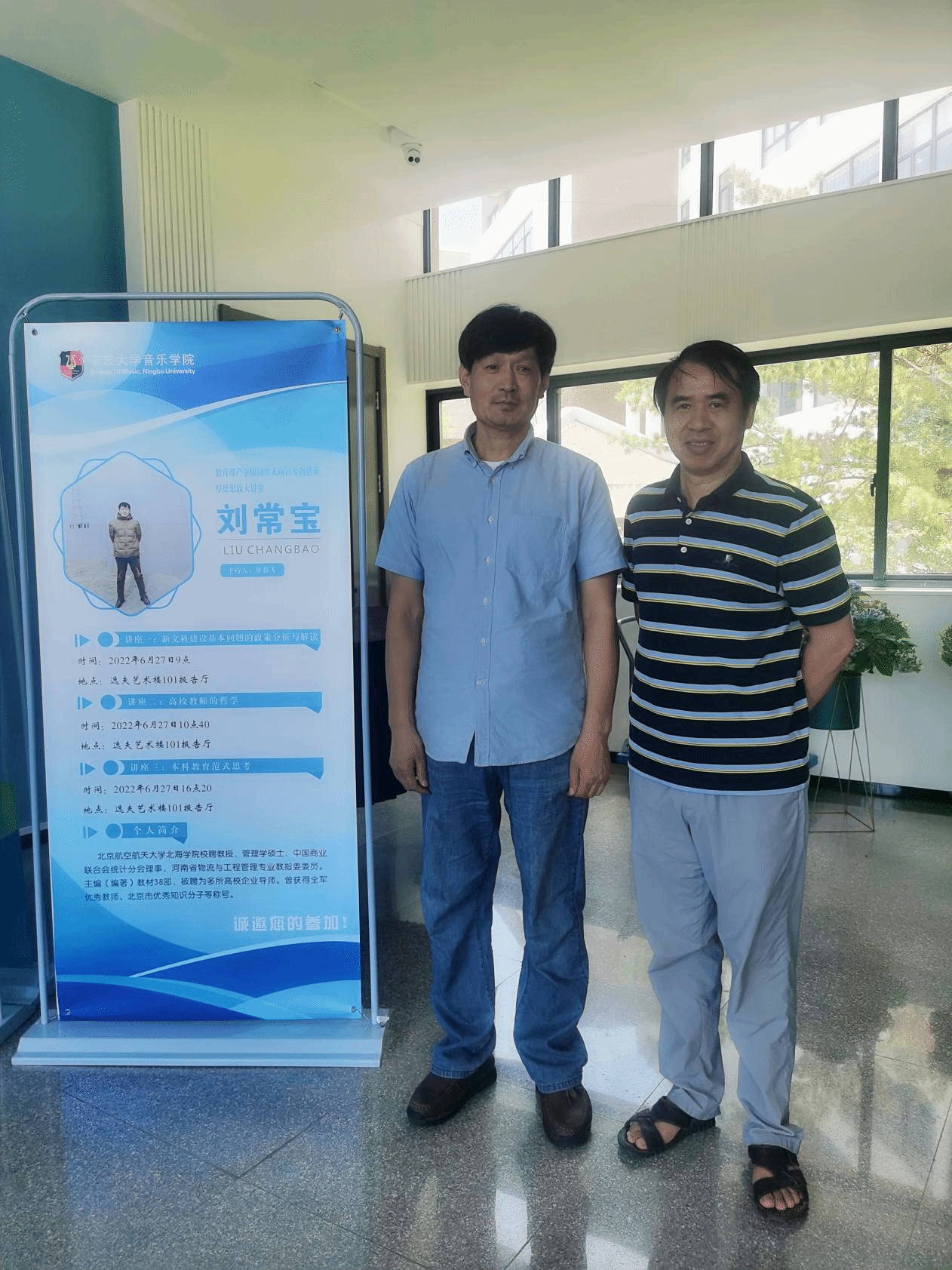上半场由北京航空航天大学北海学院校聘教授刘常宝带来两场讲座——讲座一是“新文科建设基本问题的政策分析及解读”、讲座二是“高校教师的哲学”。