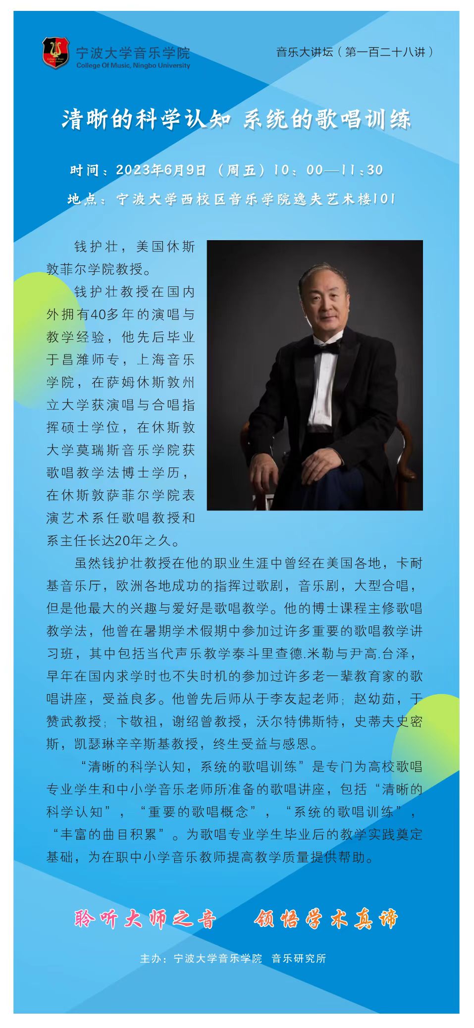 2023年6月9日,美国休斯敦菲尔学院表演艺术系歌唱教授兼系主任钱护壮教授《清晰的科学认知 系统的歌唱训练》声乐大师课在NT动漫