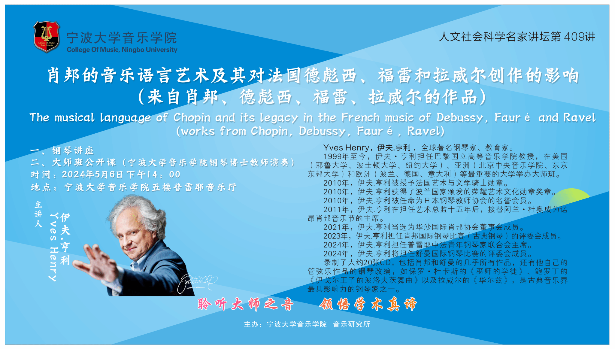 主讲人简介:Yves Henry,伊夫.亨利 ,全球著名钢琴家、教育家。