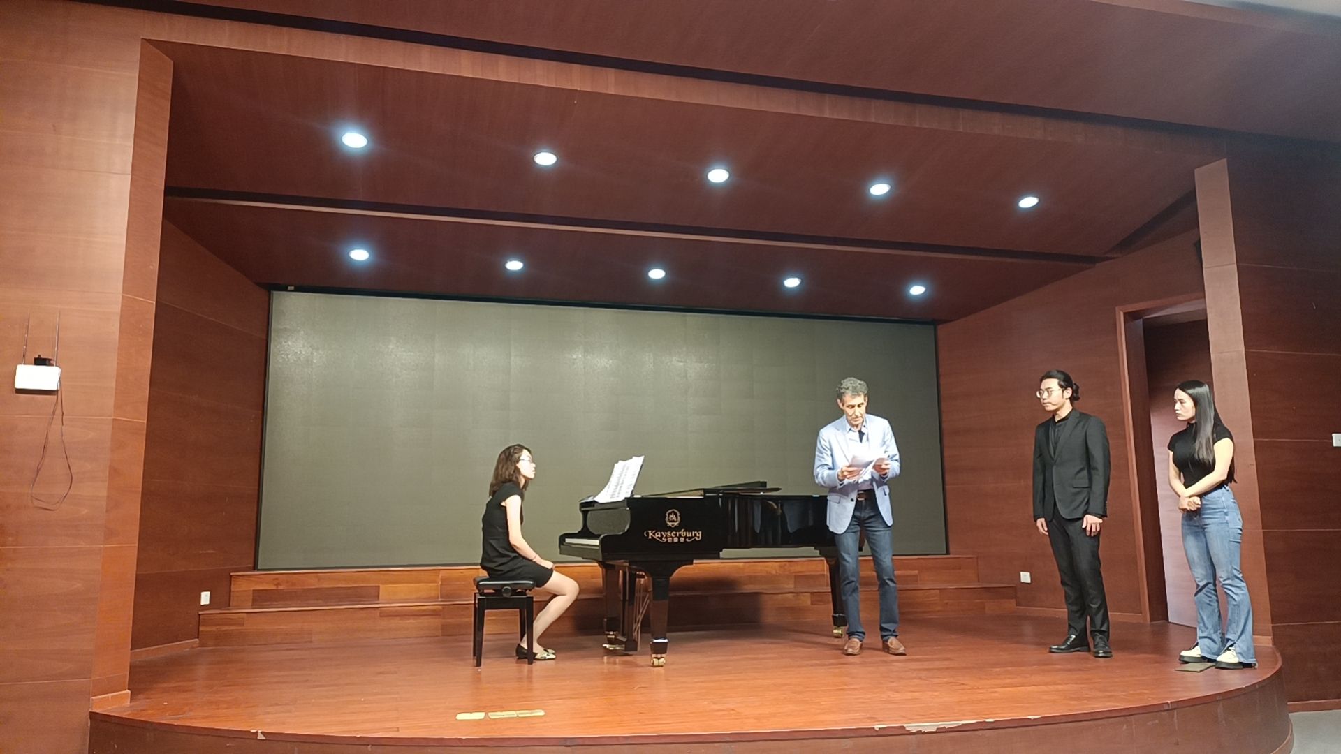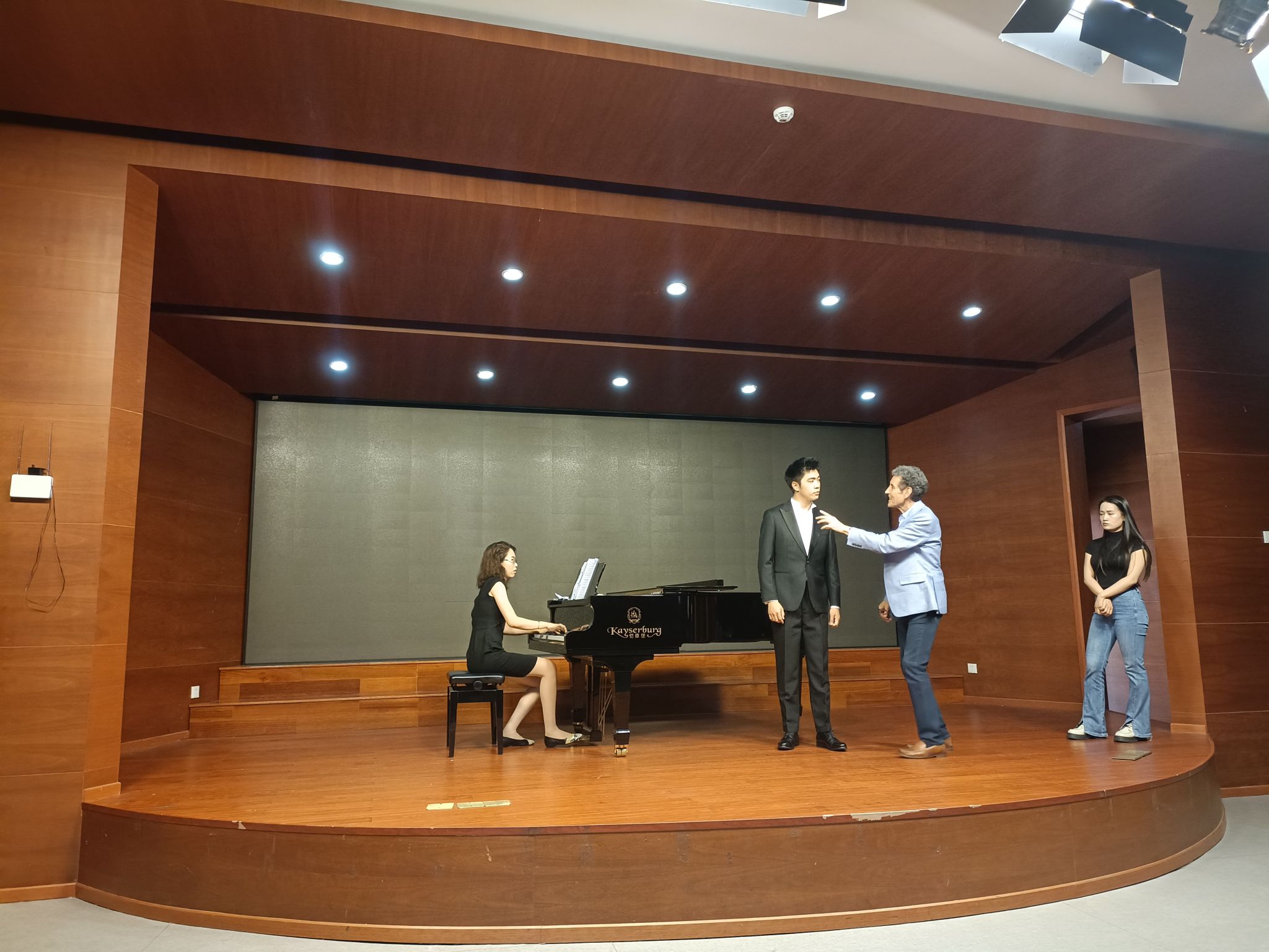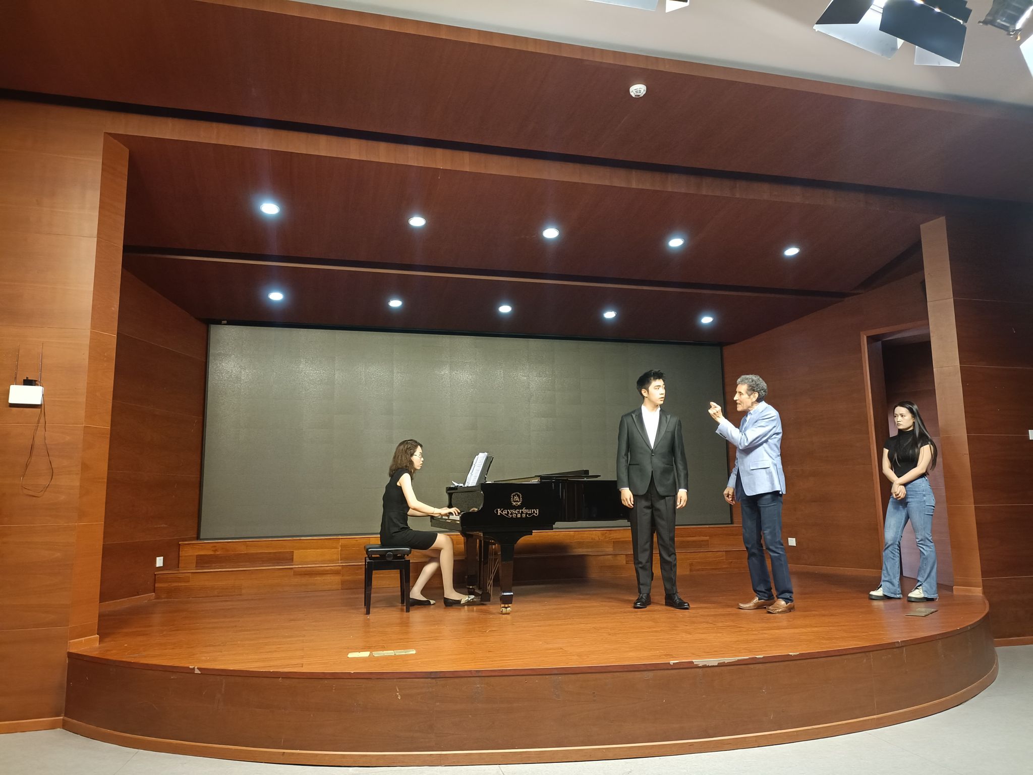 不同年级的学生参与了本次课堂,分别演唱了由亨德尔、莫扎特等作曲家创作的咏叹调,包括《唐璜》、《女人心》等歌剧中的经典唱段。沃尔什教授根据每个学生的表演提出了精要的意见和建议,主要涉及了表演礼仪、角色心理、动作神态以及歌词发音四个方面。