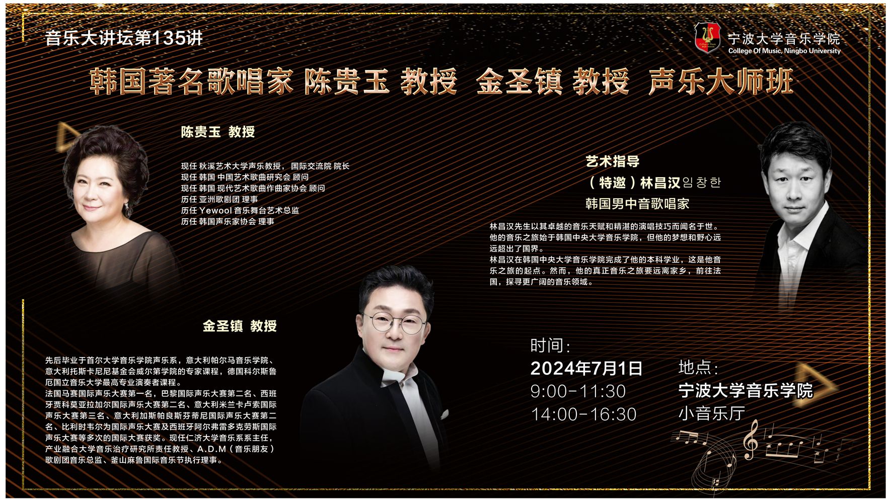 2024年7月1日,韩国著名歌唱家陈贵玉教授、仁济大学音乐系系主任金圣镇教授及韩国男中音歌唱家林昌汉老师,分别在NT动漫