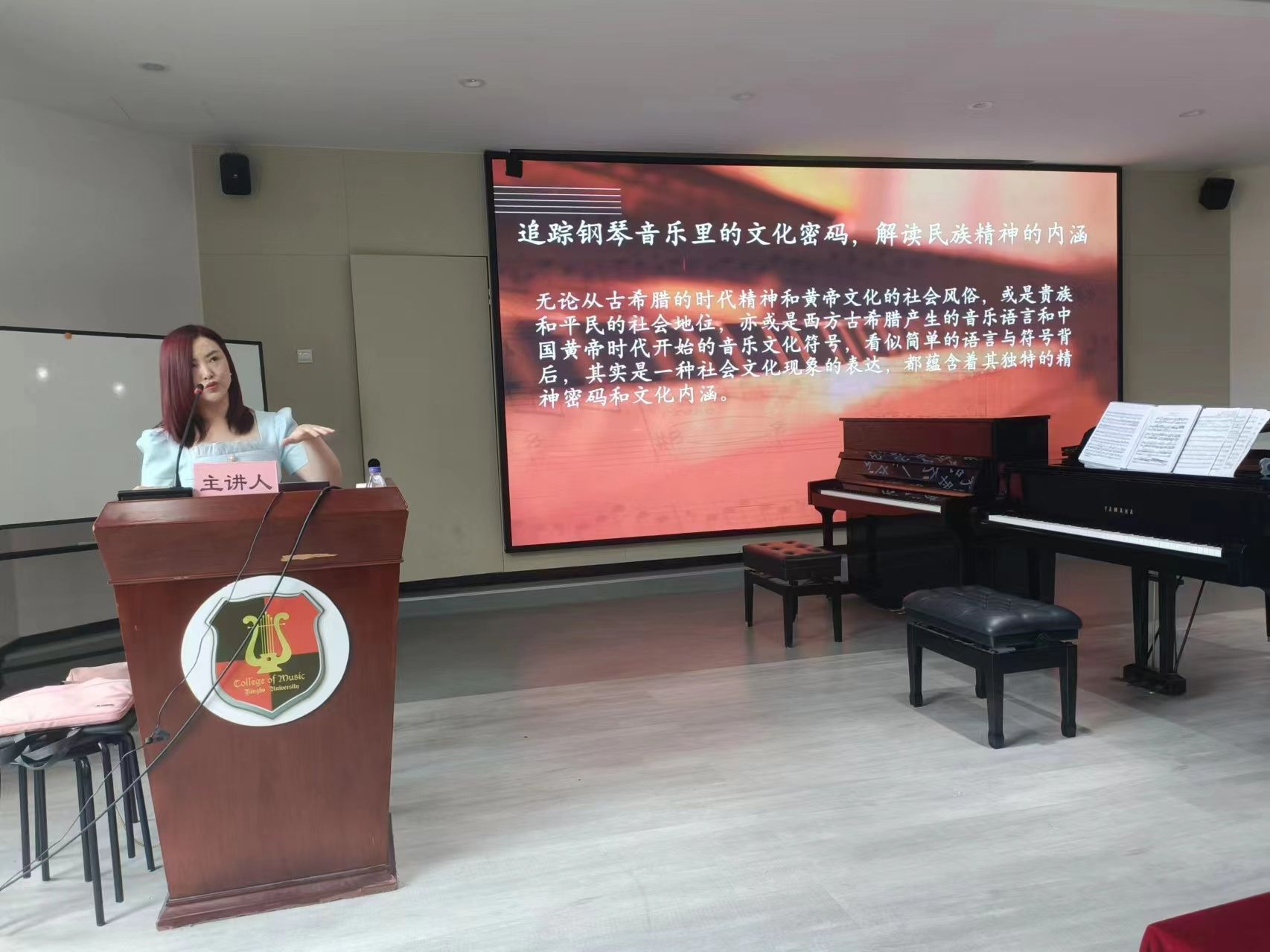 101报告厅顺利举行。本次大师课由在站博士后,浙江师范大学艺术学院钢琴系副主任副教授、硕士研究生导师新加坡首都艺术学院特聘教授《钢琴艺术》杂志专家委员会委员孟颖主讲,吸引了众多音乐爱好者与钢琴学子前来聆听学习。在课程中,孟颖教授针对两名学员的演奏进行了深入细致的点评与指导,其精湛的专业素养与独到的音乐见解赢得了在场观众的阵阵掌声。