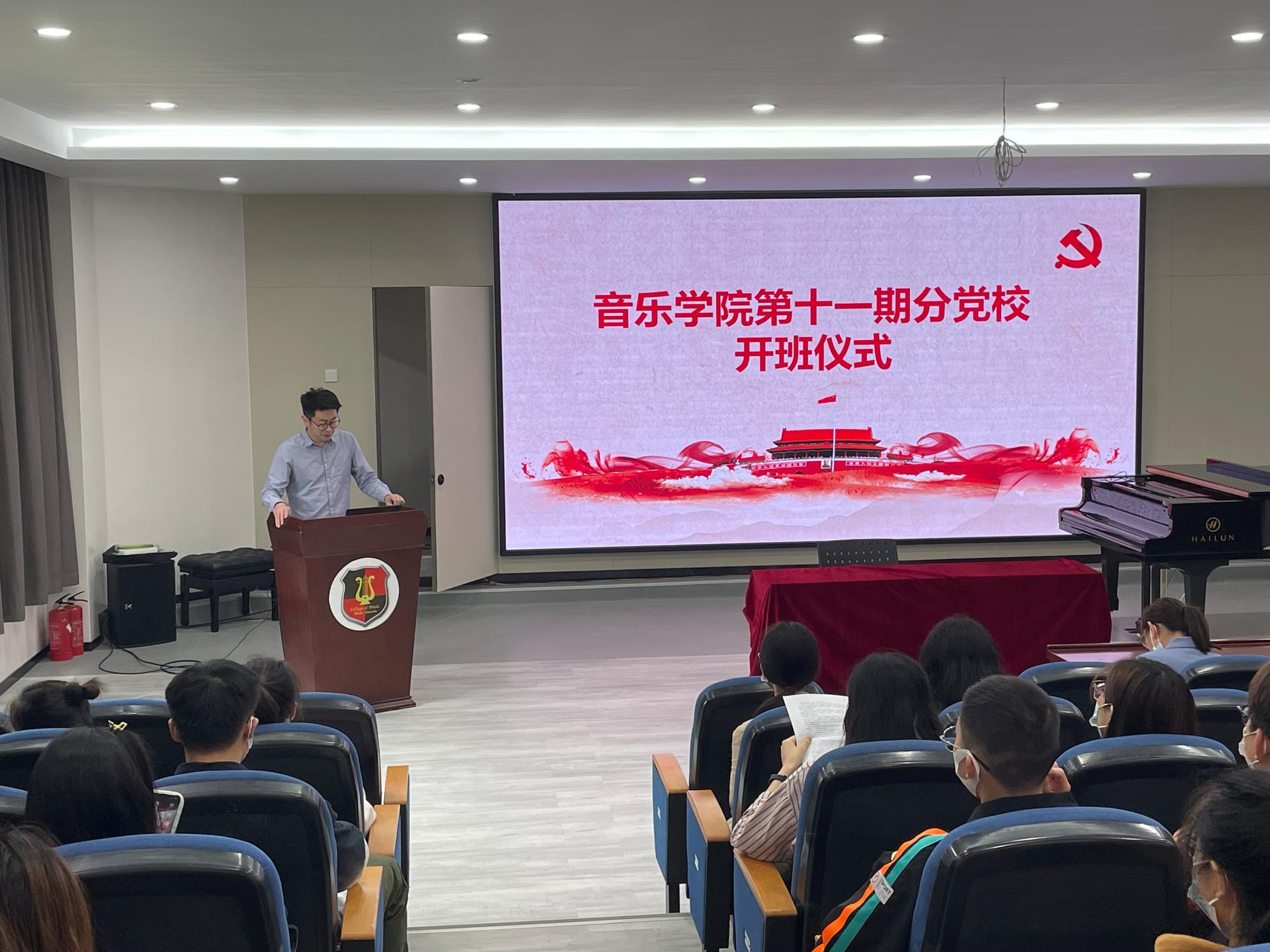 第十一期分党校的开班仪式,学院党总支书记屠春飞、党总支宣传委员周艳秋、辅导员蔡星语出席,开班仪式由学院学生工作负责人徐德猛主持,参训学员55人。