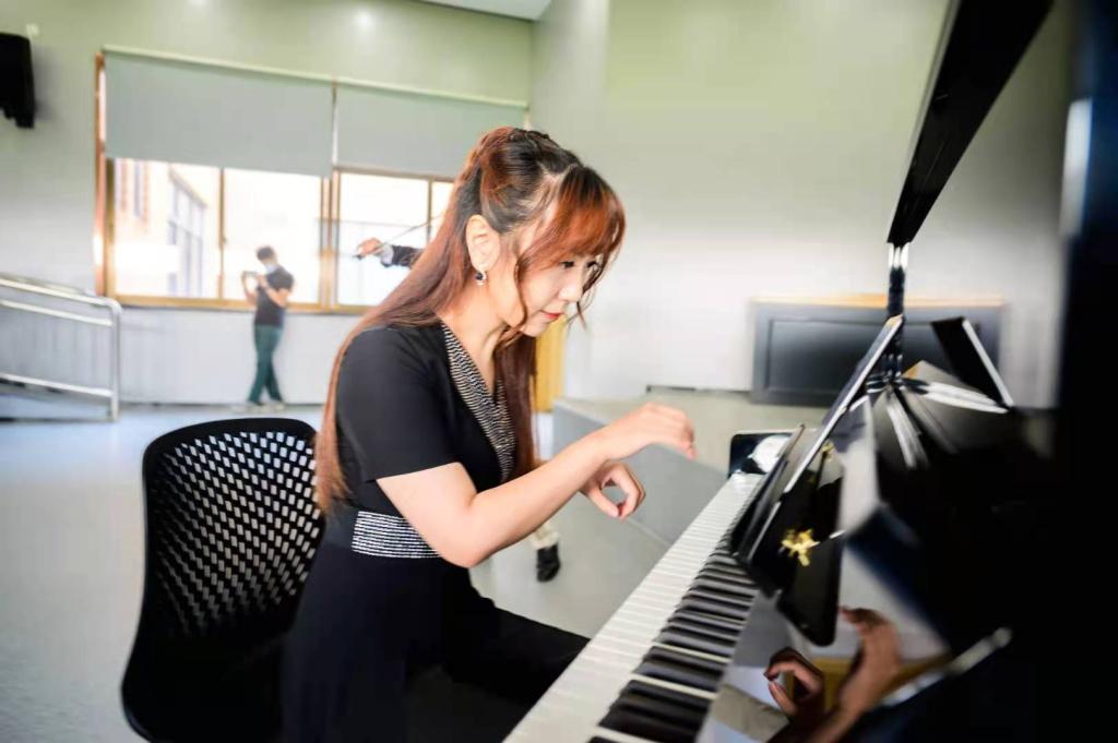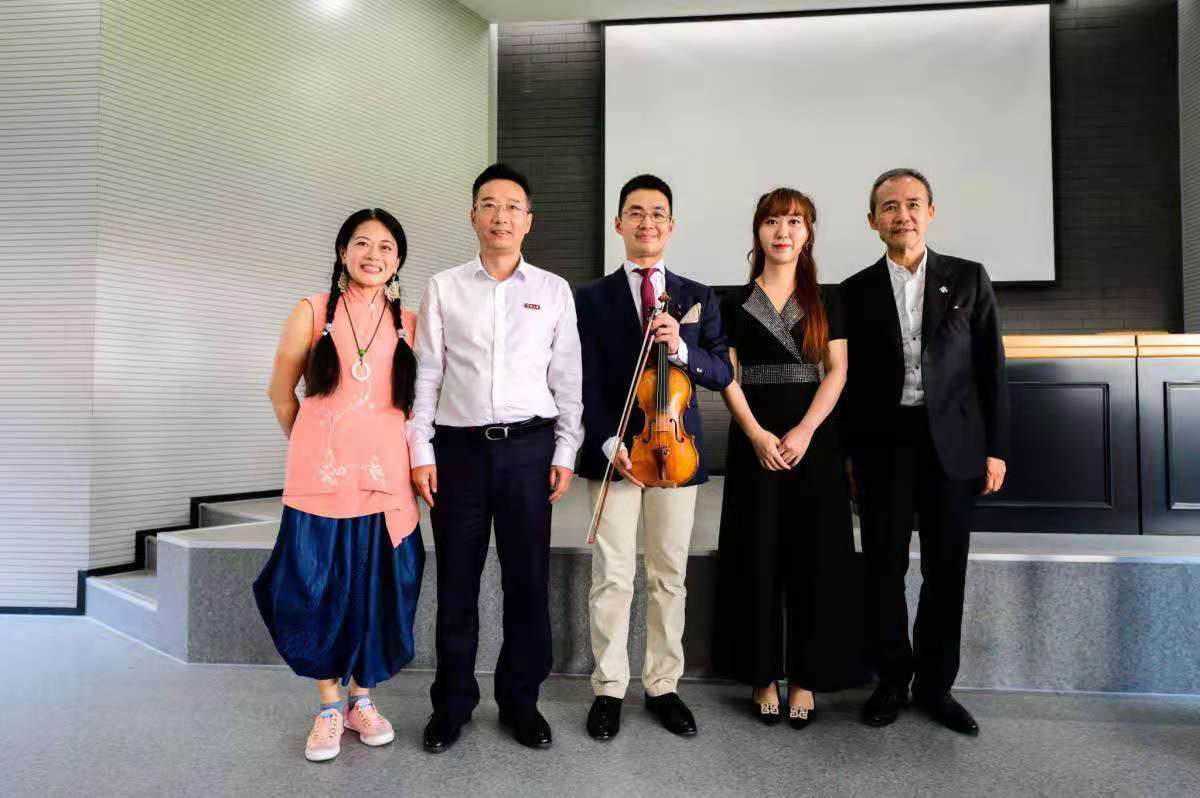 青年教师刘雪丽博士共同演绎了著名小提琴协奏曲“梁山伯与祝英台” 和意大利名曲“查尔达什舞曲”。既体验了宁波的“梁祝文化”也欣赏了西方激情洋溢的音乐。高参、刘雪丽二位演奏家的合奏堪称天作之合,婉转悠扬,艳惊四座,像是合作排练已久的老拍档。然而实际上,在本次合奏之前,二位老师并未见面排练,而是在御承堂美术馆直接用音乐沟通,不得不令人钦佩两位演奏家高超的艺术水平。在观众的热情要求下,以加演一曲久石让的“重新开始”结束了今日的活动。置身于美丽而充满活力的校园,王石主席兴致勃勃地为宁大实力打CALL!