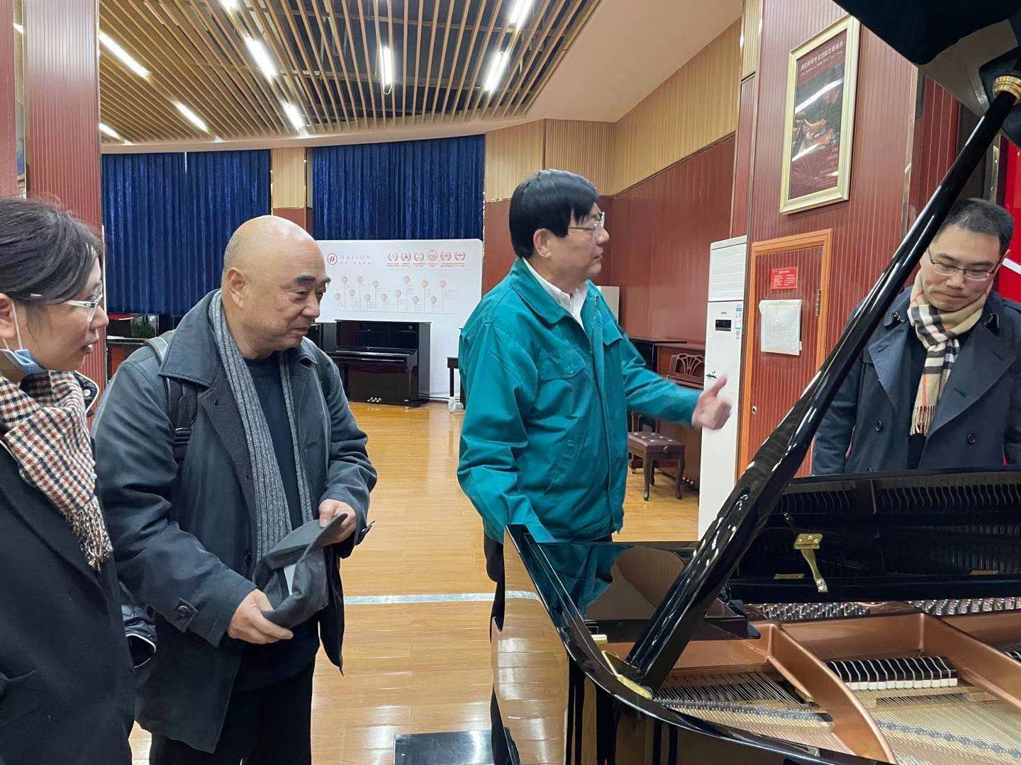 院长俞子正教授、党总支书记屠春飞带领钢琴教研组部分教师走访中国·海伦钢琴股份有限公司,进行交流学习。海伦钢琴董事长陈海伦全程陪同。