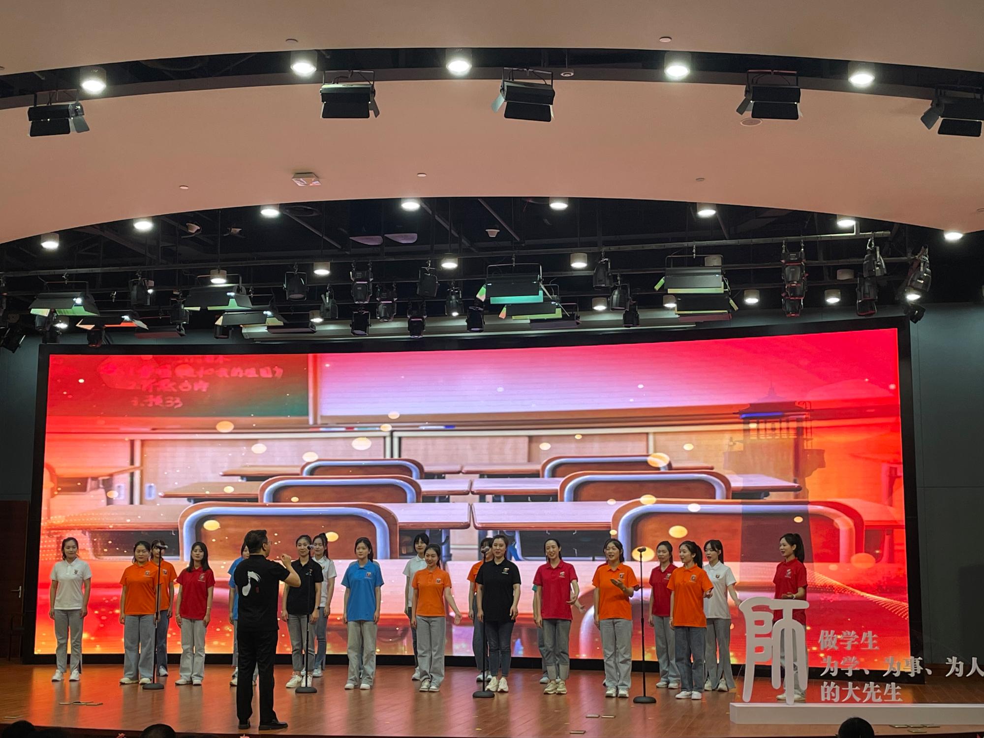 二十位学生共同参与演绎,在悠扬婉转的歌声中感恩教师,更励志教师鉴定围挡余人、为国育才,服务国家、服务人民,用当排头兵,以更加卓越的成果迎接党的二十大胜利召开。