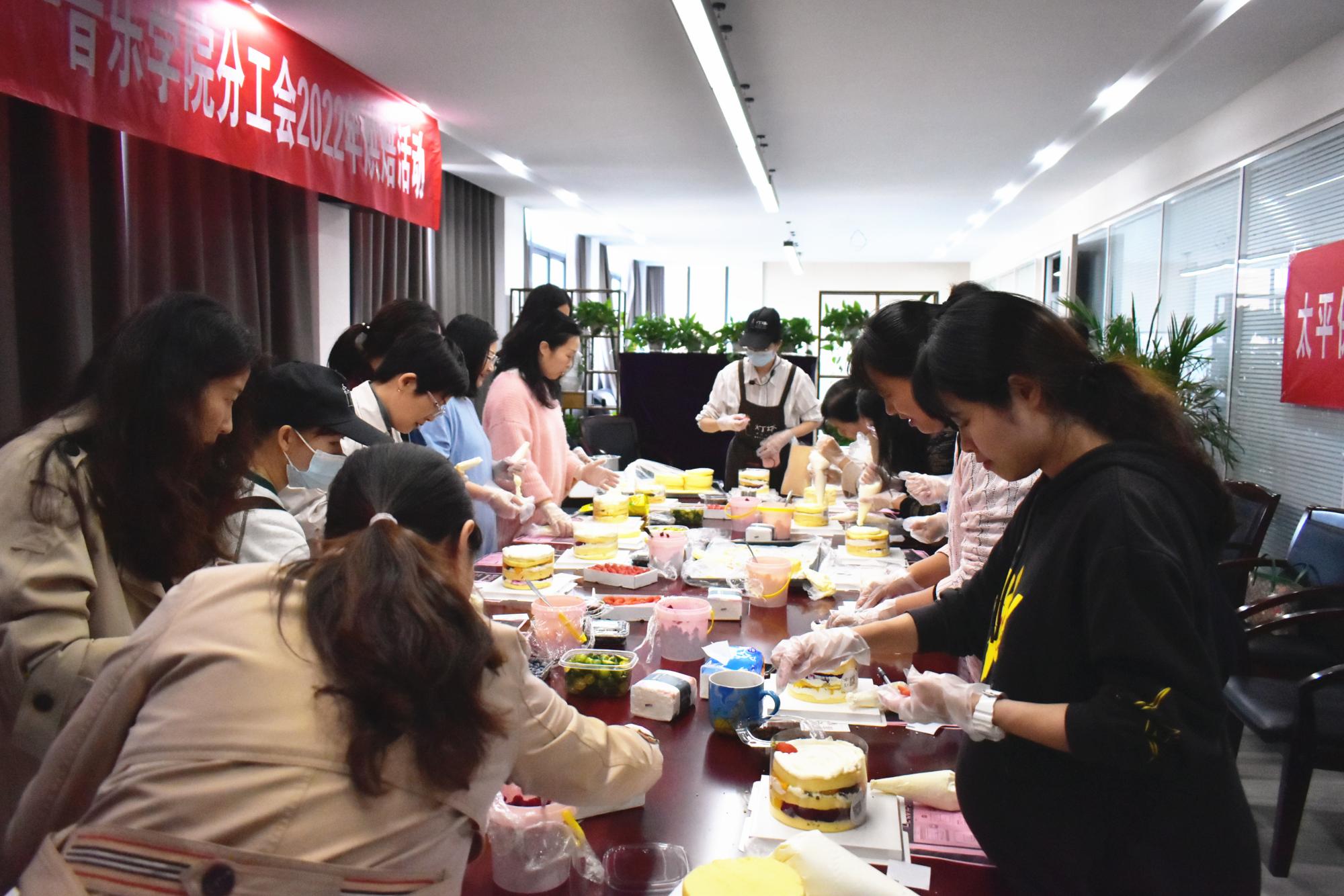 首先由蛋糕烘焙师傅展示烘培流程,随后女教职工们按照流程,根据自己的想法DIY蛋糕,在烘培师的指导下,制作了一个个精美的生日蛋糕。